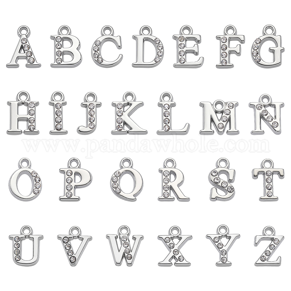 52шт 26 стили сплава стразы подвески, алфавит, платина, кристалл