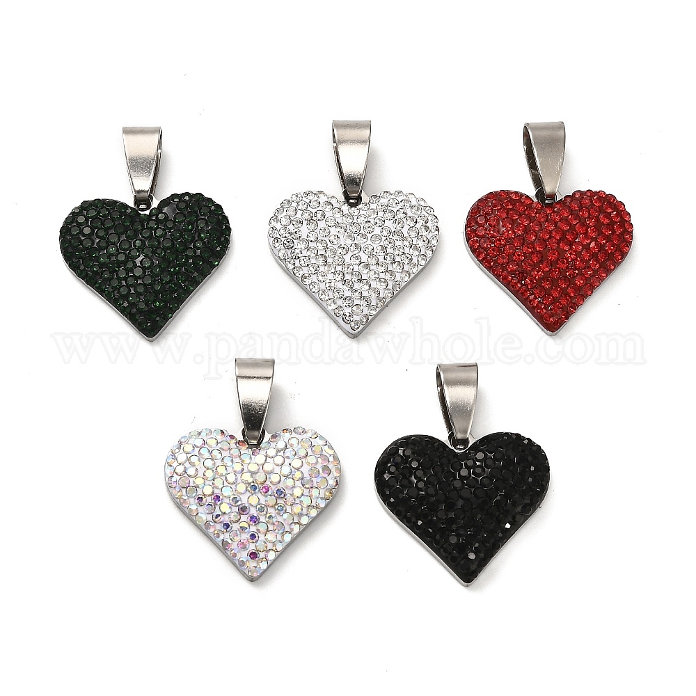 201 подвески из нержавеющей стали и глины, со стразами, сердце, цвет нержавеющей стали