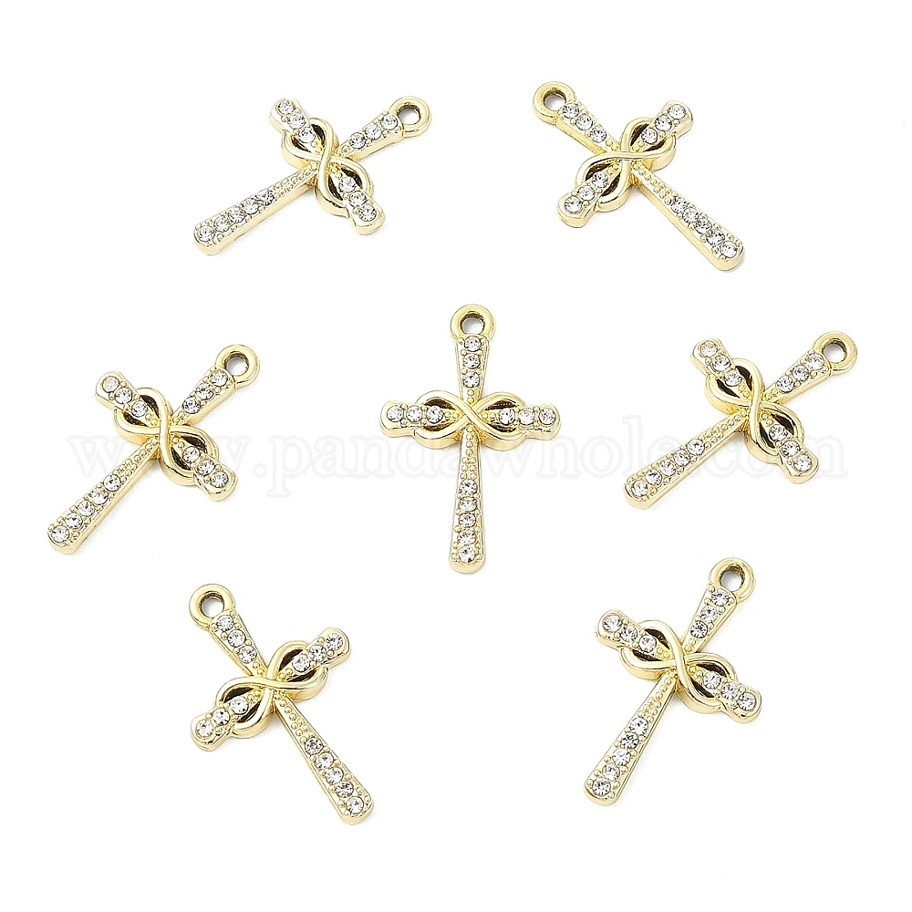 • Золотой 10подвески со стразами из сплава, uv покрытие, крестик, золотые, 26x16.5x2.5 мм, отверстие : 1.8 мм