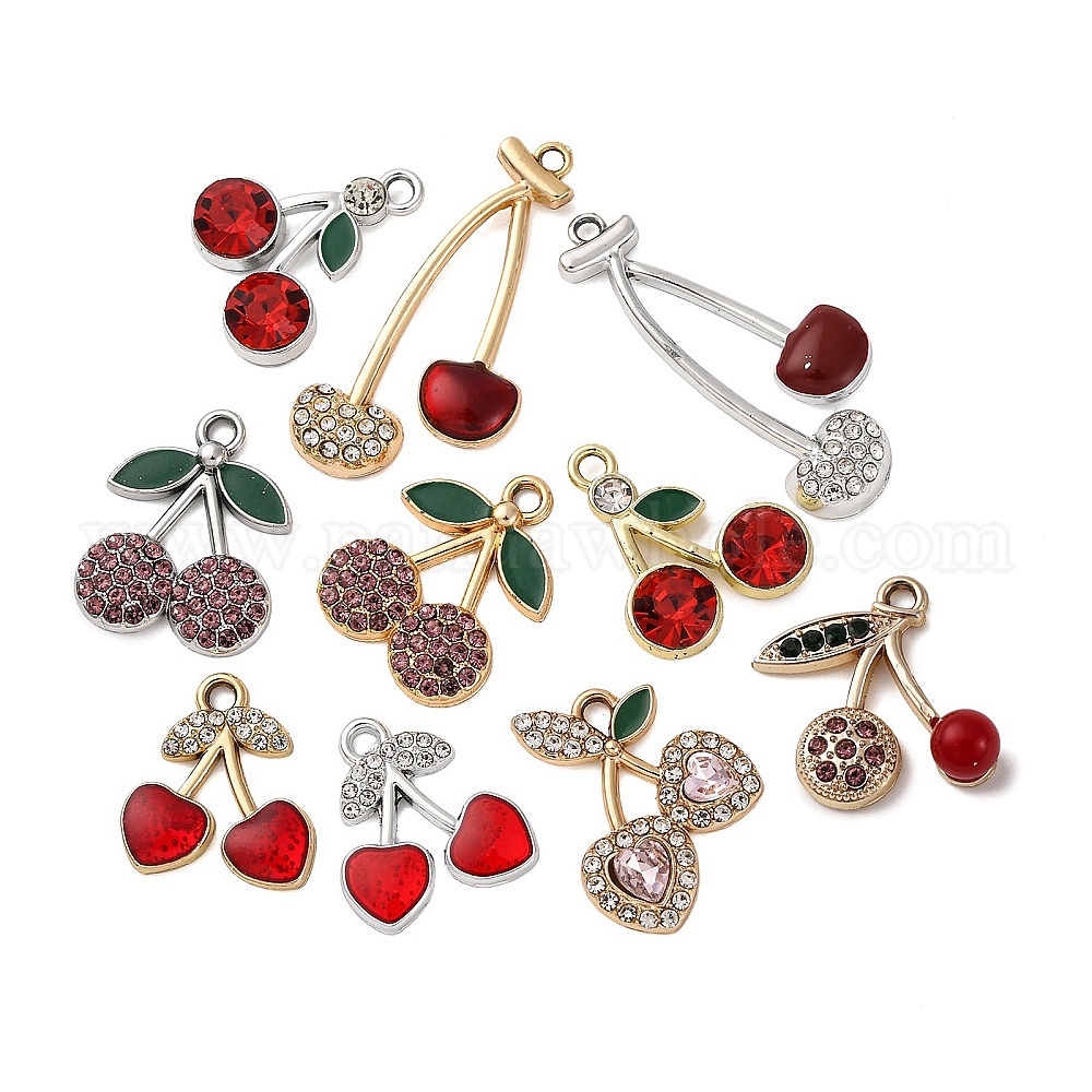 Подвески из вишневого сплава, горный хрусталь и эмали