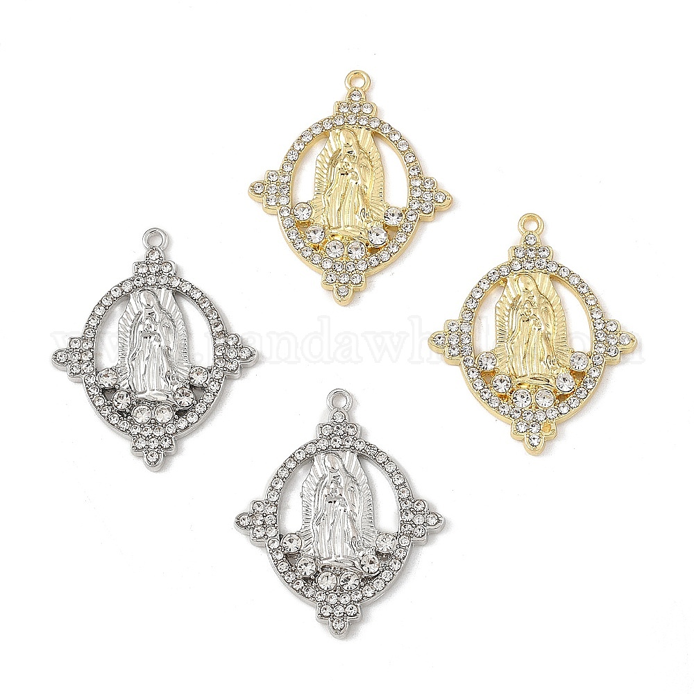 • Золотой Подвески из сплава и страза, овальные с рисунками " virgin mary", стойки покрытие, золотые, 32.5x27x2.5 мм, отверстие : 1.5 мм