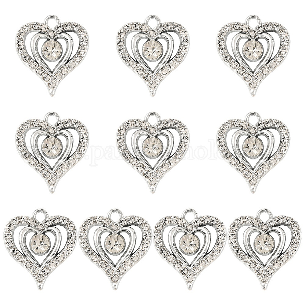 10подвески из сплава с кристаллами и стразами, сердце прелести