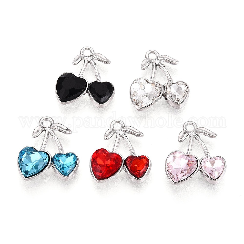 Подвески из сплава и страза, вишня, золотые / платиновые