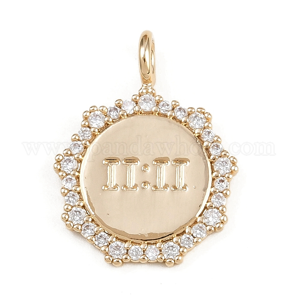Латунные подвески, плоский круглый с цифрами 11:11 подвески, со стразами и соединительным кольцом