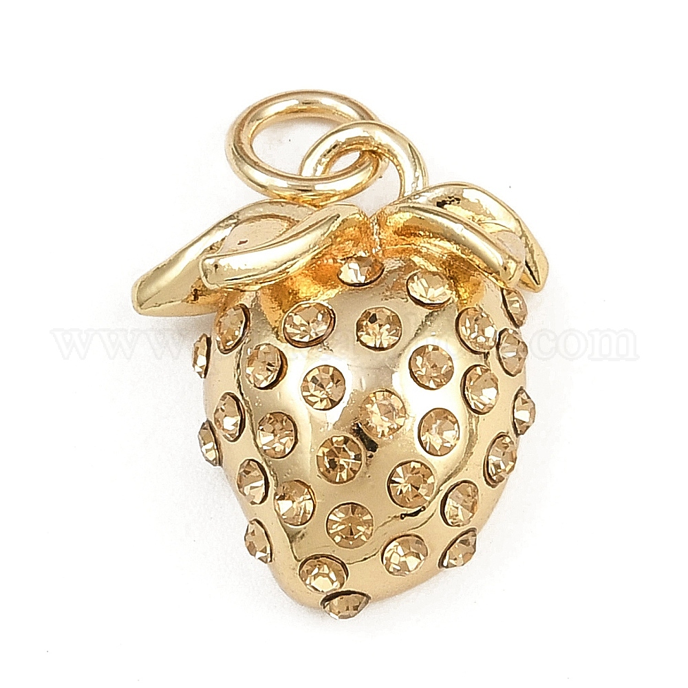 Латунные подвески, клубника прелести, со стразами и соединительным кольцом