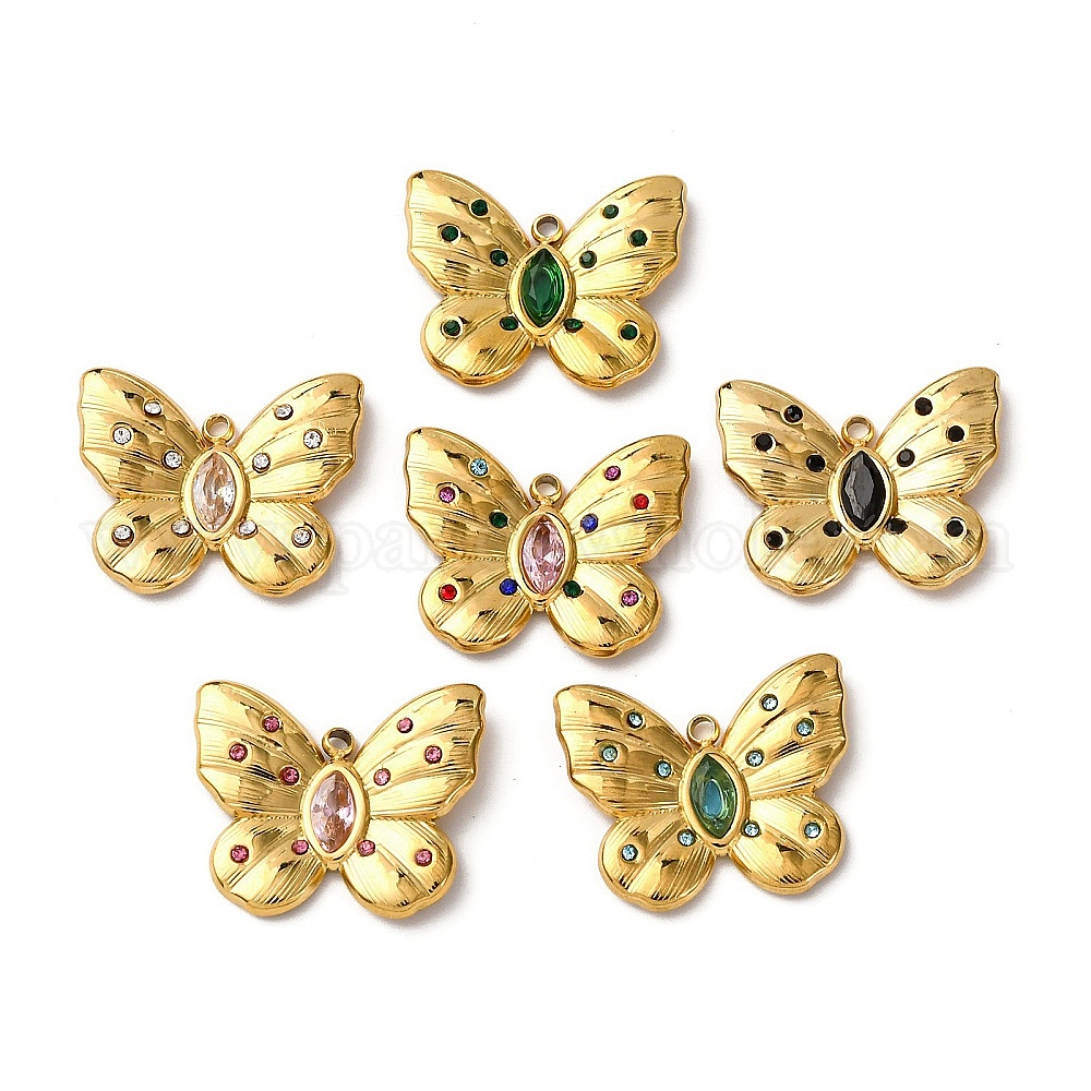 304 из нержавеющей стали горный хрусталь подвески, бабочки прелести, вакуумное покрытие pvd, реальный 18 k позолоченный