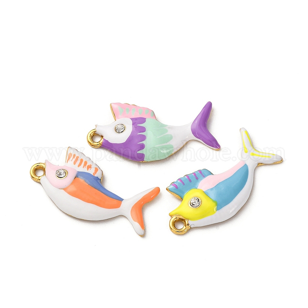 304 из нержавеющей стали горный хрусталь подвески, Эмаль стиле, рыбы прелести, вакуумное покрытие pvd, реальный 18 k позолоченный