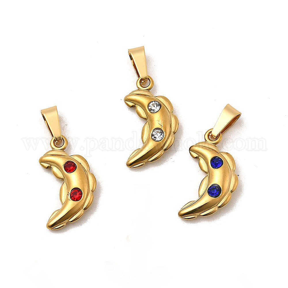 • Кристалл 304 из нержавеющей стали горный хрусталь подвески, луна, с 201 защелкой из нержавеющей стали на поручнях, ионное покрытие (ip), реальный 18 k позолоченный, кристалл, 18x10x3.5 мм, отверстие : 6x3 мм