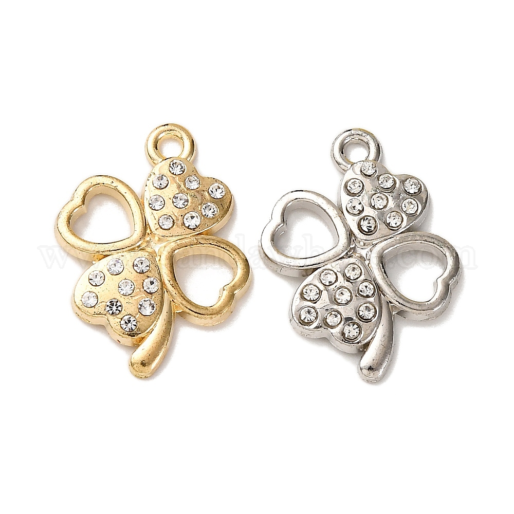 • Золотой Сплава с стразами подвески, клевер, золотые, 23x17.5x3.5 мм, отверстие : 1.8 мм