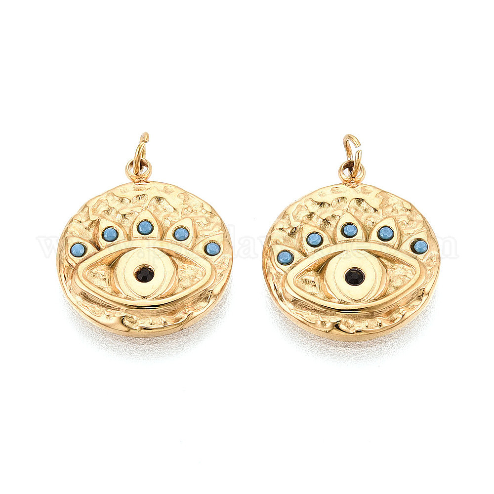 304 подвески из нержавеющей стали со стразами, плоский круглый и сглаз, с целью перехода в кольце, ионное покрытие (ip)