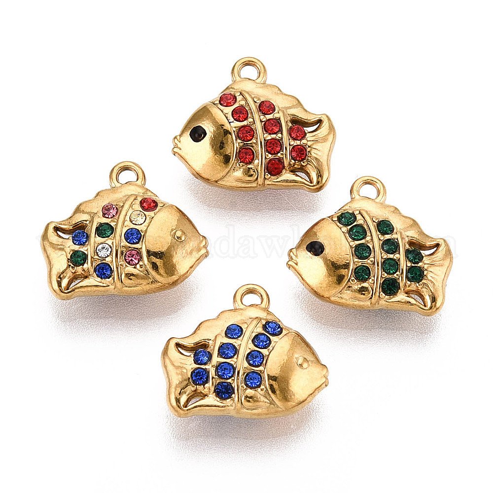 304 прелести нержавеющей стали, рыба, со стразами, без свинца и без кадмия, реальный 18 k позолоченный