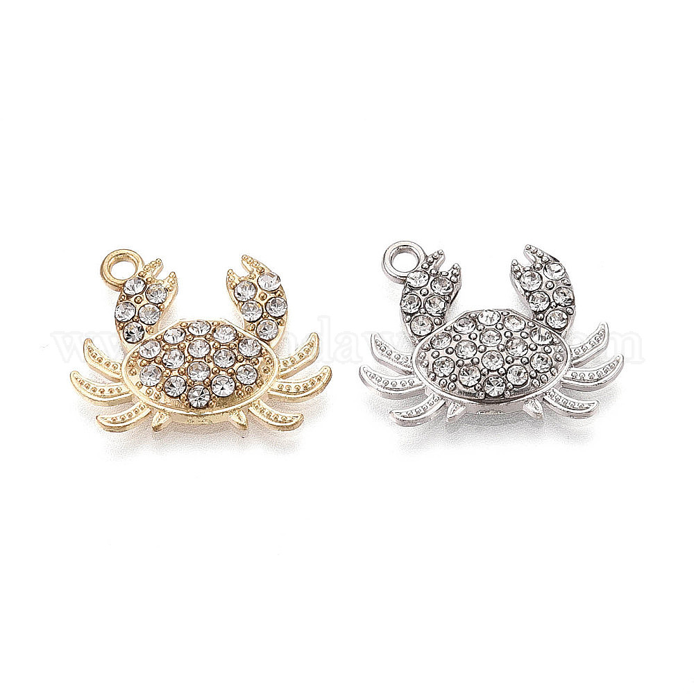 Подвески из сплава и страза, краб, без свинца и без кадмия