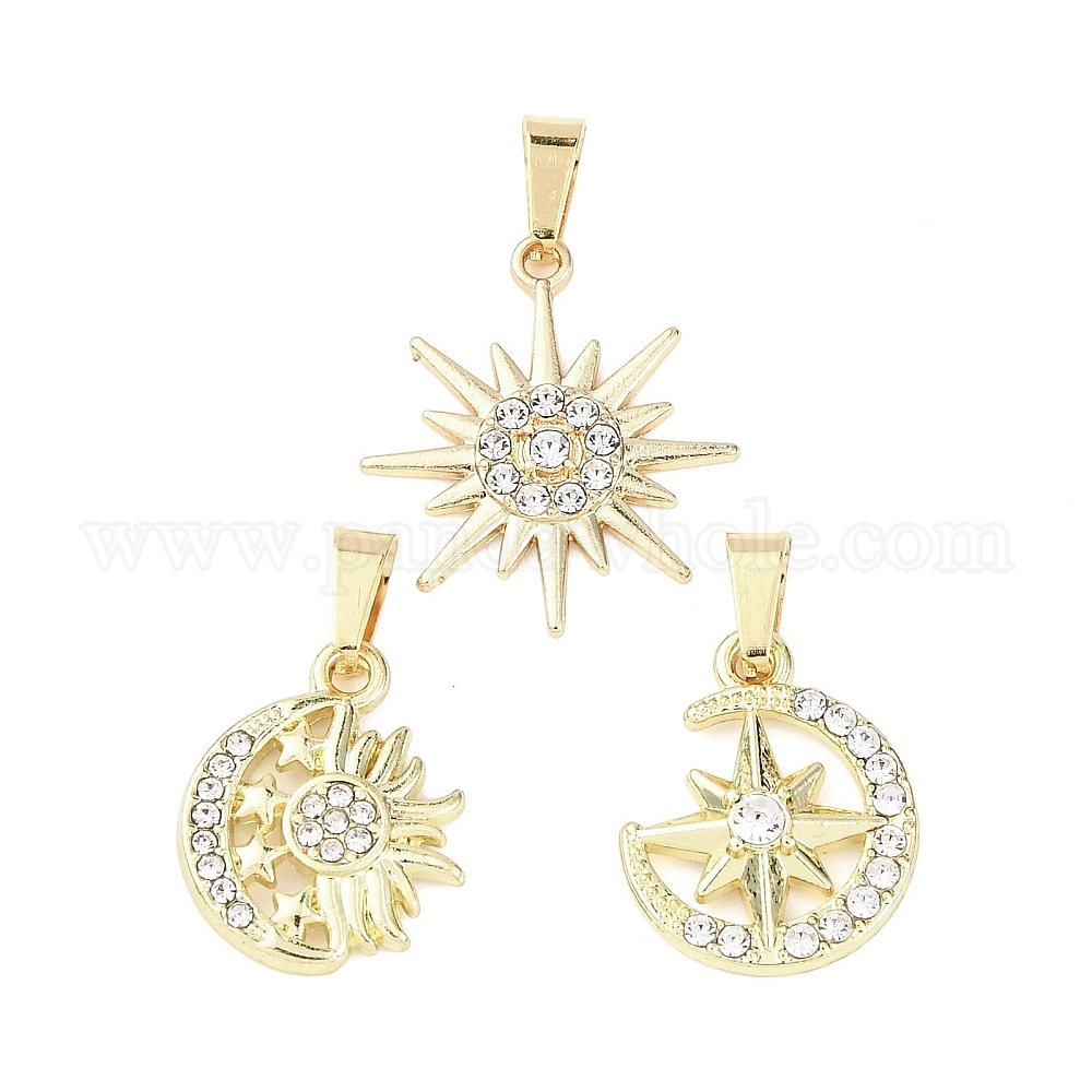 3шт. комплекты подвесок из сплава с кристаллами и стразами, Вс & луна, с 201 защелкой из нержавеющей стали на поручнях