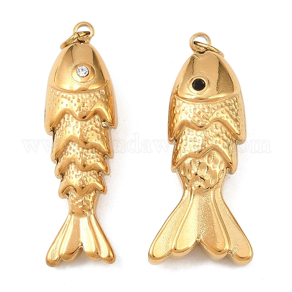304 подвески из нержавеющей стали, рыба, со стразами, ионное покрытие (ip), с целью перехода в кольце, реальный 18 k позолоченный
