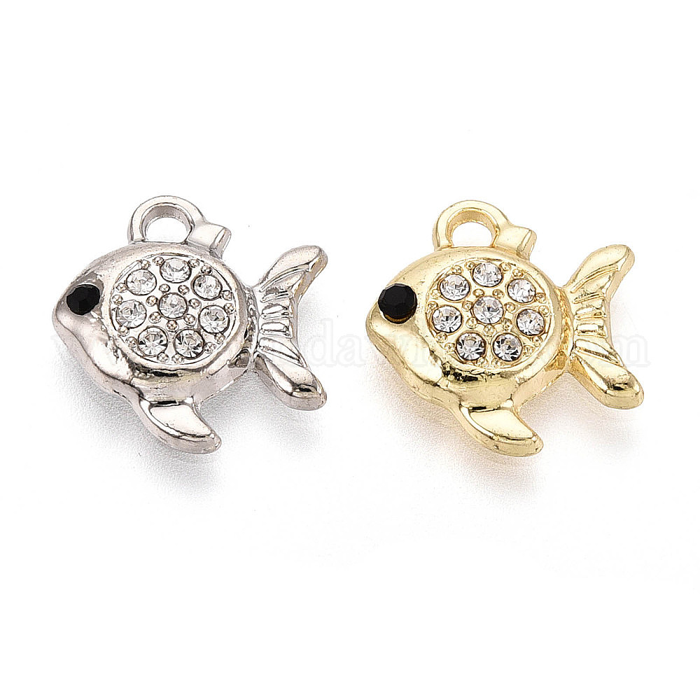 Подвески из сплава и страза, рыба, без свинца и без кадмия