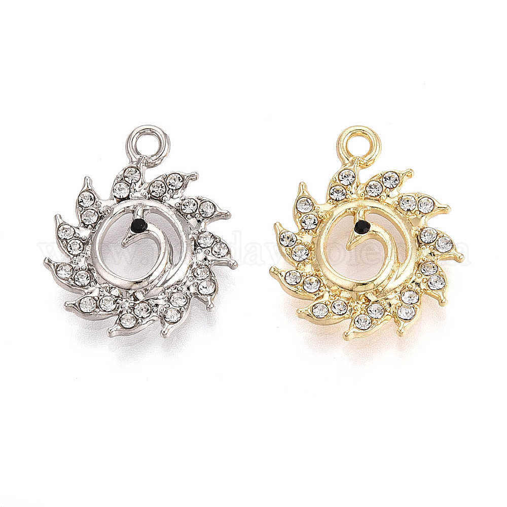 Подвески из сплава и страза, лебедь, без свинца и без кадмия