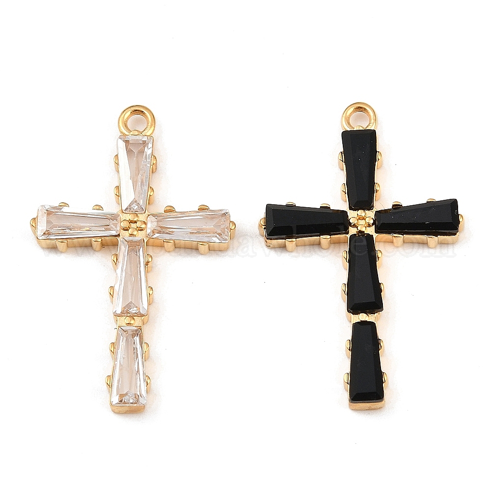 304 подвески из нержавеющей стали, крестик, со стразами, реальный 18 k позолоченный, вакуумное покрытие pvd