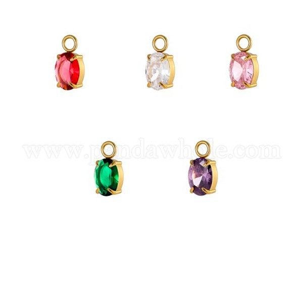 304 из нержавеющей стали амулеты горный хрусталь, овальные, ионное покрытие (ip), реальный 18 k позолоченный