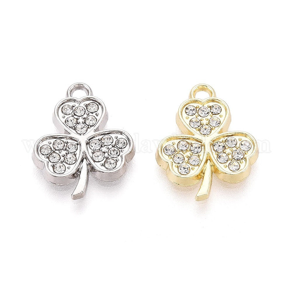 • Платина Подвески из сплава и хрустальных страз, клевер амулеты, платина, 17.5x14x2 мм, отверстие : 1.6~1.8 мм