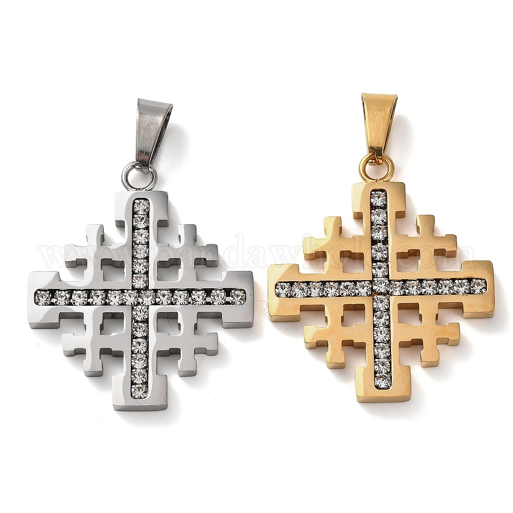 304 подвески из нержавеющей стали, амулеты с иерусалимским крестом, со стразами