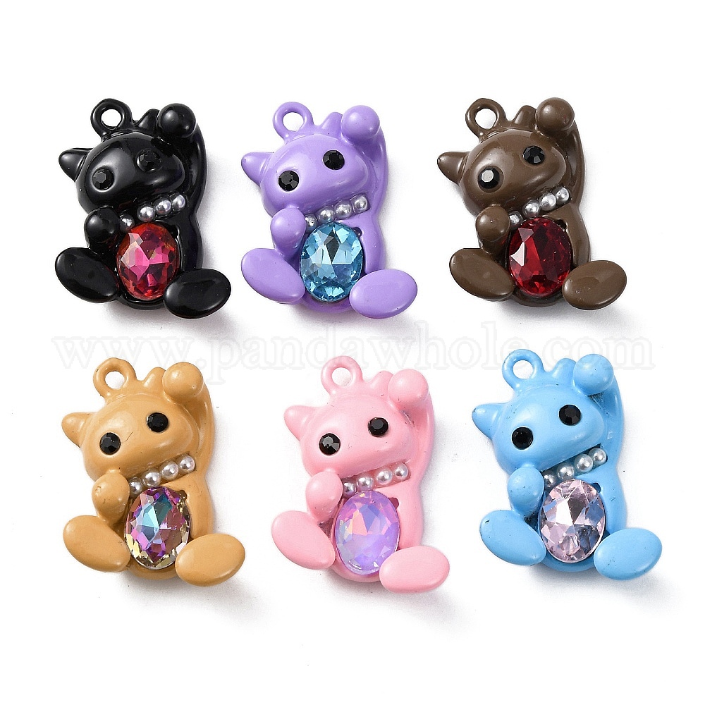 • (52) Непрозрачная лаванда Подвески из сплава и страза, нести прелести, с ABS имитации жемчуга, стойки покрытие, платина, разноцветные, 25x16.5x7 мм, отверстие : 1.6 мм