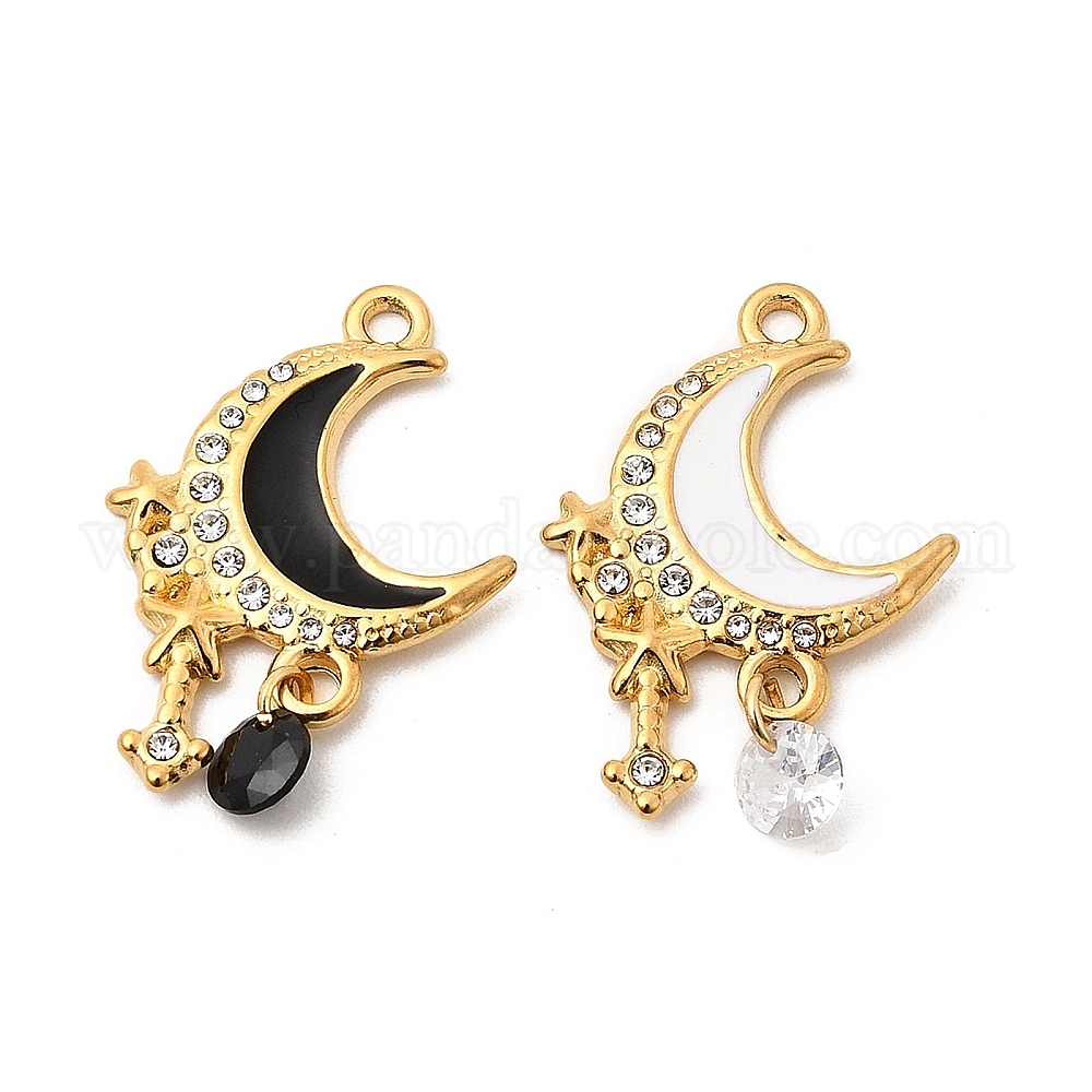 304 из нержавеющей стали горный хрусталь подвески, Луна прелести, Эмаль стиле, ионное покрытие (ip), реальный 18 k позолоченный