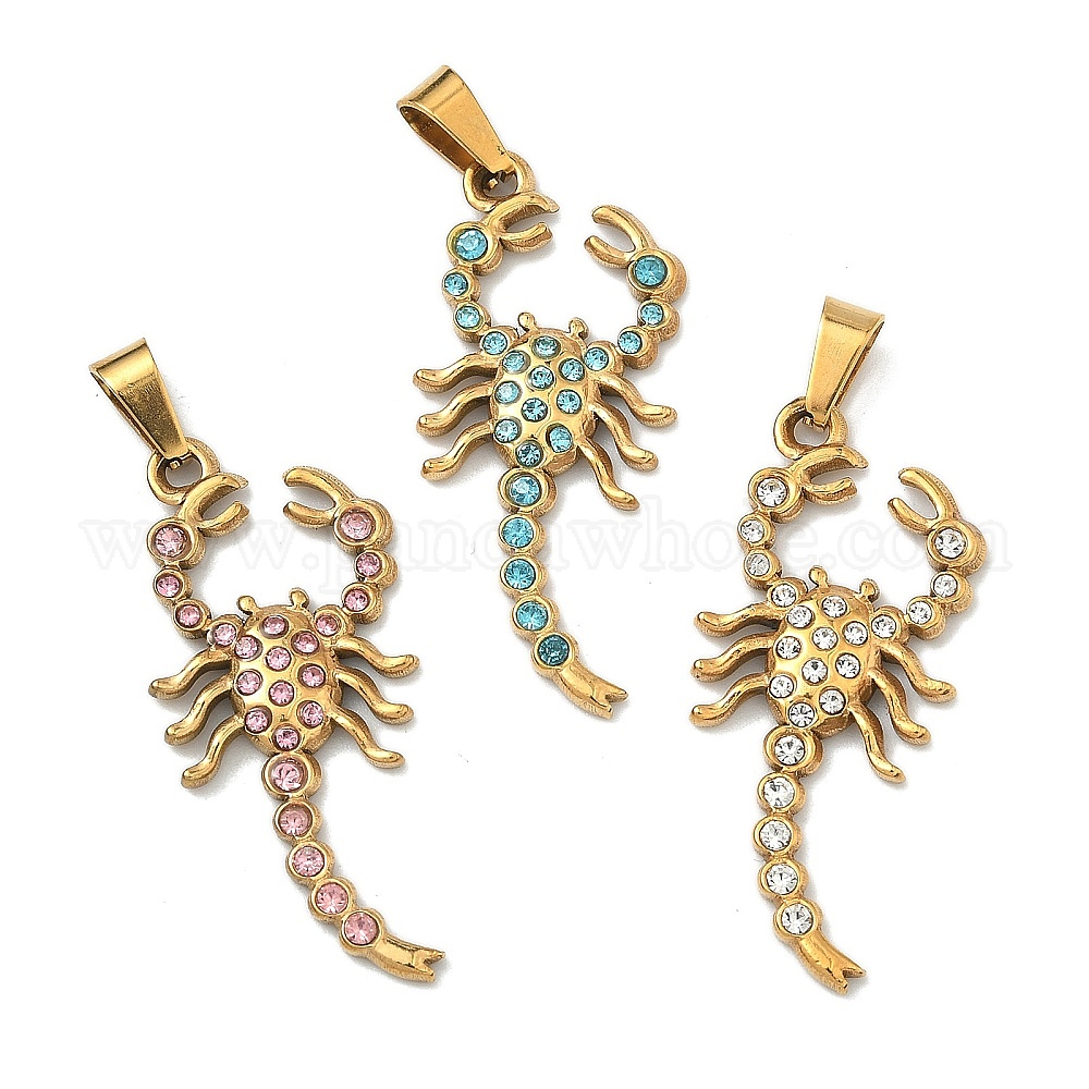 304 подвески из нержавеющей стали, прелести скорпиона, со стразами, с кнопкой на поруки, ионное покрытие (ip), золотые