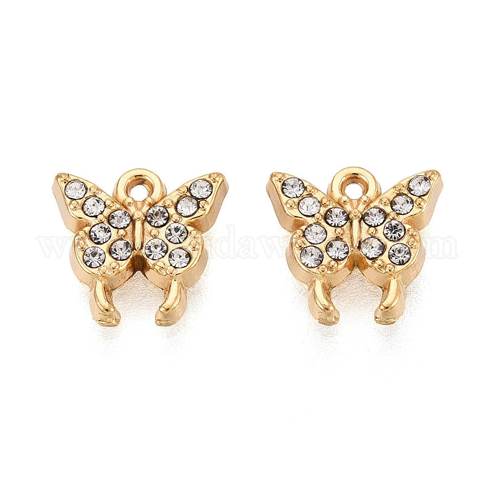 • Настоящее золото 18K 304 из нержавеющей стали амулеты горный хрусталь, бабочки прелести, вакуумное покрытие pvd, реальный 18 k позолоченный, 8x8.5x2 мм, отверстие : 0.8 мм