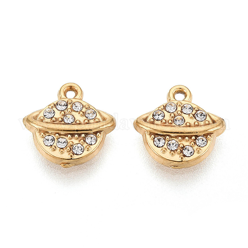 • Настоящее золото 18K 304 из нержавеющей стали амулеты горный хрусталь, прелести планеты, вакуумное покрытие pvd, реальный 18 k позолоченный, 9x9x2 мм, отверстие : 0.9 мм