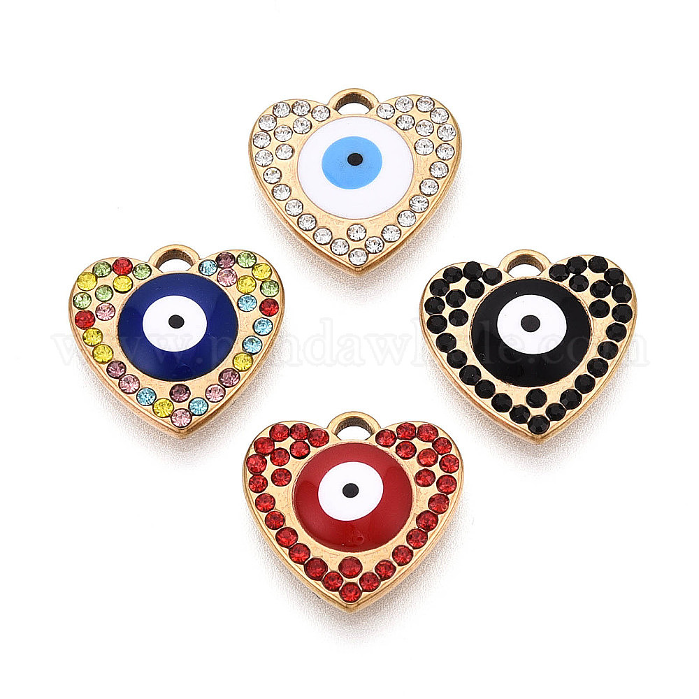 304 из нержавеющей стали горный хрусталь подвески, обереги в форме сердца и от сглаза, с эмалью, вакуумное покрытие pvd, реальный 18 k позолоченный
