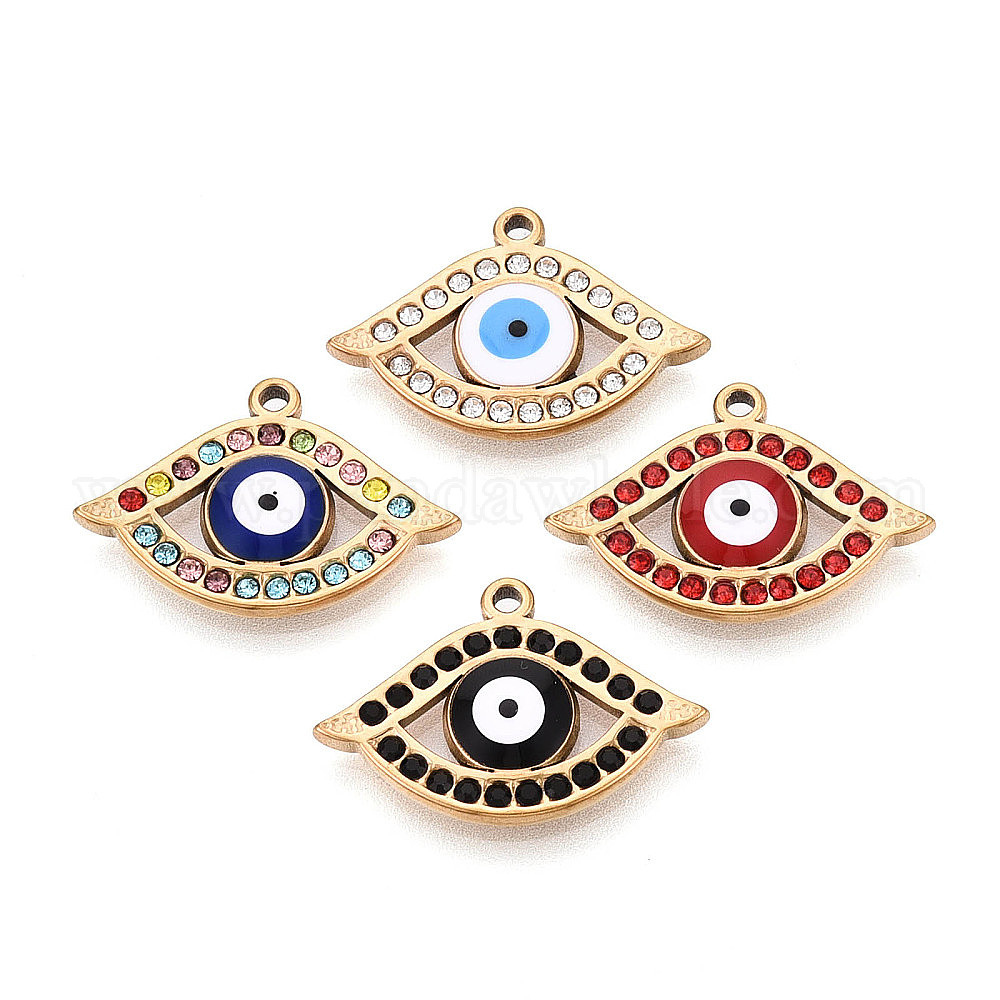 304 из нержавеющей стали горный хрусталь подвески, Злые чары глаз, с эмалью, вакуумное покрытие pvd