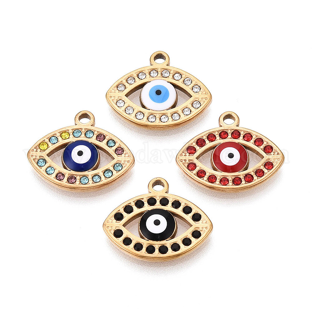 304 из нержавеющей стали горный хрусталь подвески, Злые чары глаз, с эмалью, вакуумное покрытие pvd, реальный 18 k позолоченный