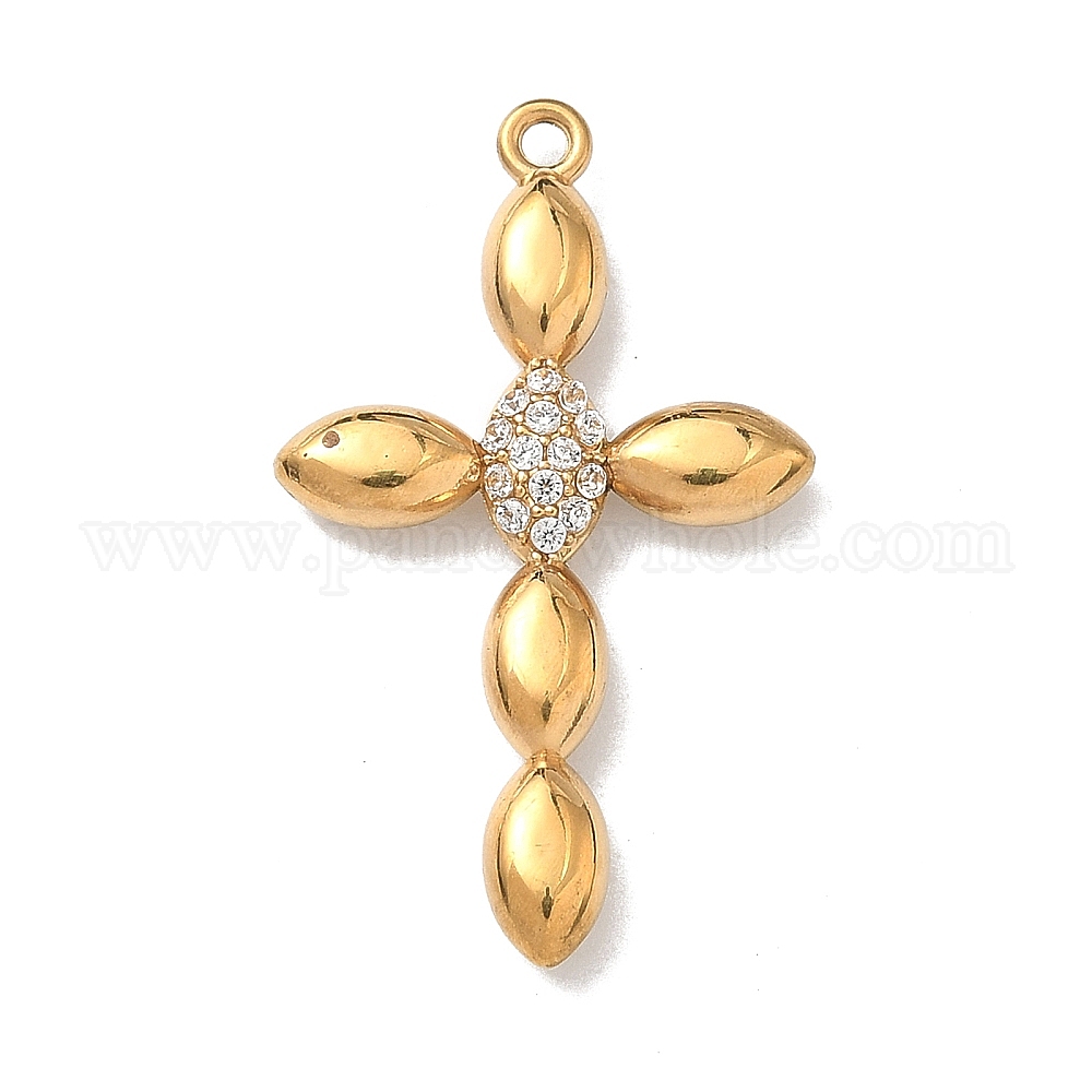 • Настоящее золото 18K 304 из нержавеющей стали с горный хрусталь подвески, крест прелести, ионное покрытие (ip), реальный 18 k позолоченный, 27x16x3 мм, отверстие : 1.2 мм