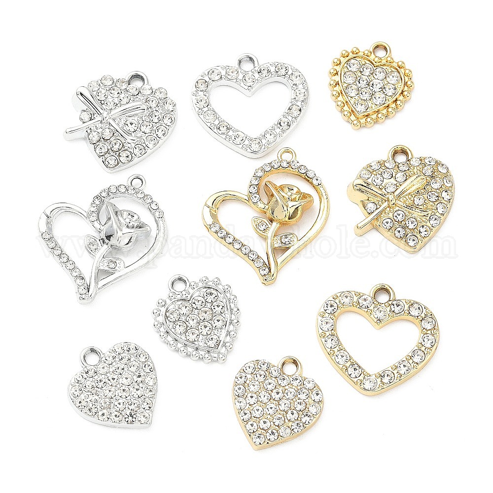 • Золотой Подвески из сплава , сердце прелести, uv покрытие, со стразами, золотые, 15.5x13.5x2.7 мм, отверстие : 1.8 мм