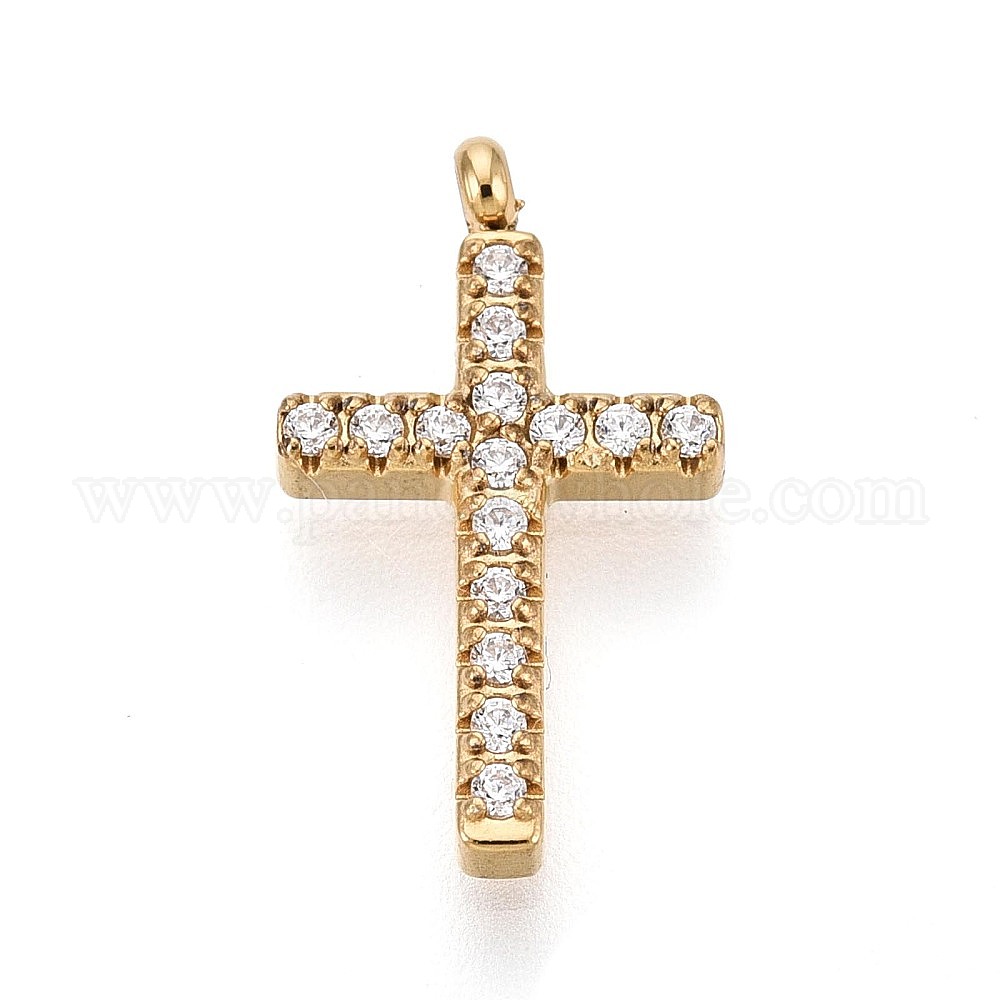 303 подвески из нержавеющей стали, со стразами, крест прелести, ионное покрытие (ip), долговечный
