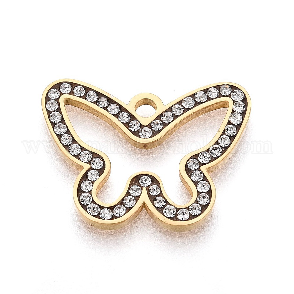 303 подвески из нержавеющей стали, со стразами, бабочки прелести, ионное покрытие (ip), долговечный