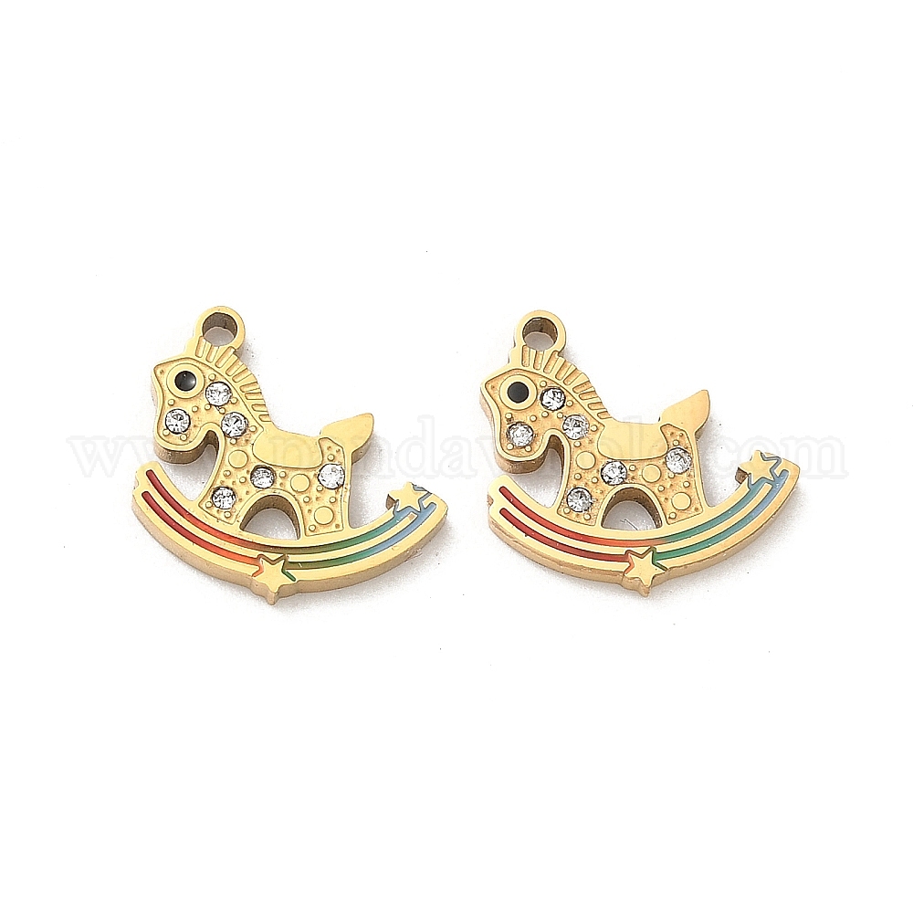 • Золотой 304 из нержавеющей стали горный хрусталь подвески, лошадка прелести, с эмалью, золотые, 10x14x2 мм, отверстие : 1.4 мм
