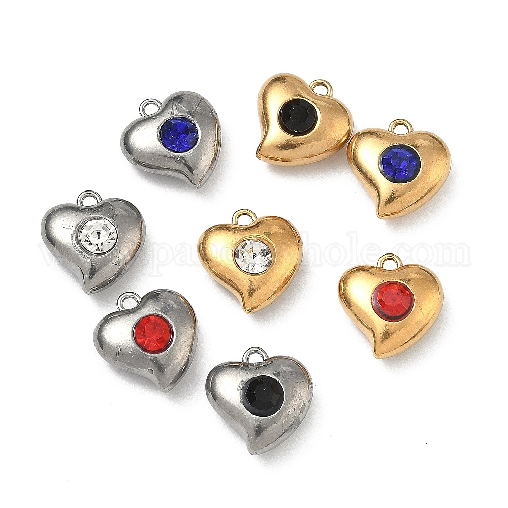 304 подвески из нержавеющей стали, сердце прелести, со стразами, ионное покрытие (ip), золотой / нержавеющая сталь цвета