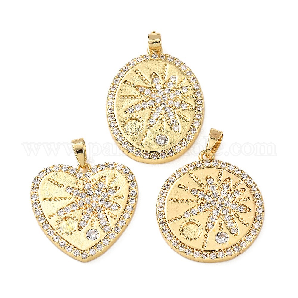 • Сердце Подвески из латунных микростразов, звезды прелести, золотые, сердце прелести, 20x21x2.5 мм, отверстие : 5x3 мм
