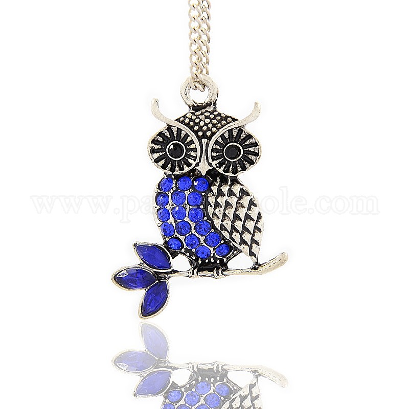 Антикварные серебряные подвески тон сплава горный хрусталь птиц, сова ожерелье подвески для Хэллоуина, 34x26x3 мм, отверстие : 3 мм