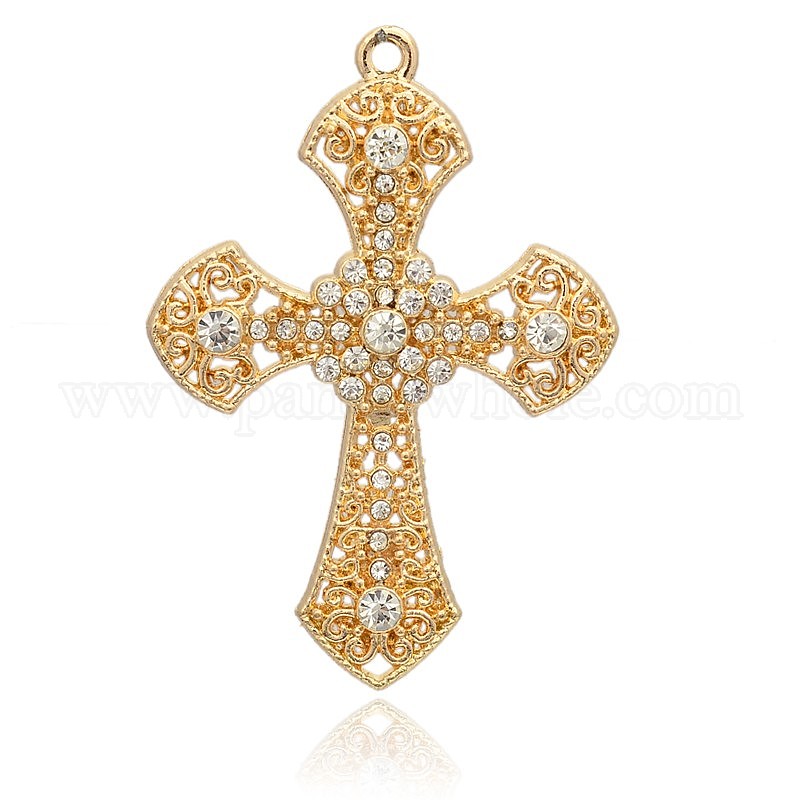 Латинский крест золотой сплав горный хрусталь покрытием большие кулоны, 65x46x5 мм, отверстие : 3 мм