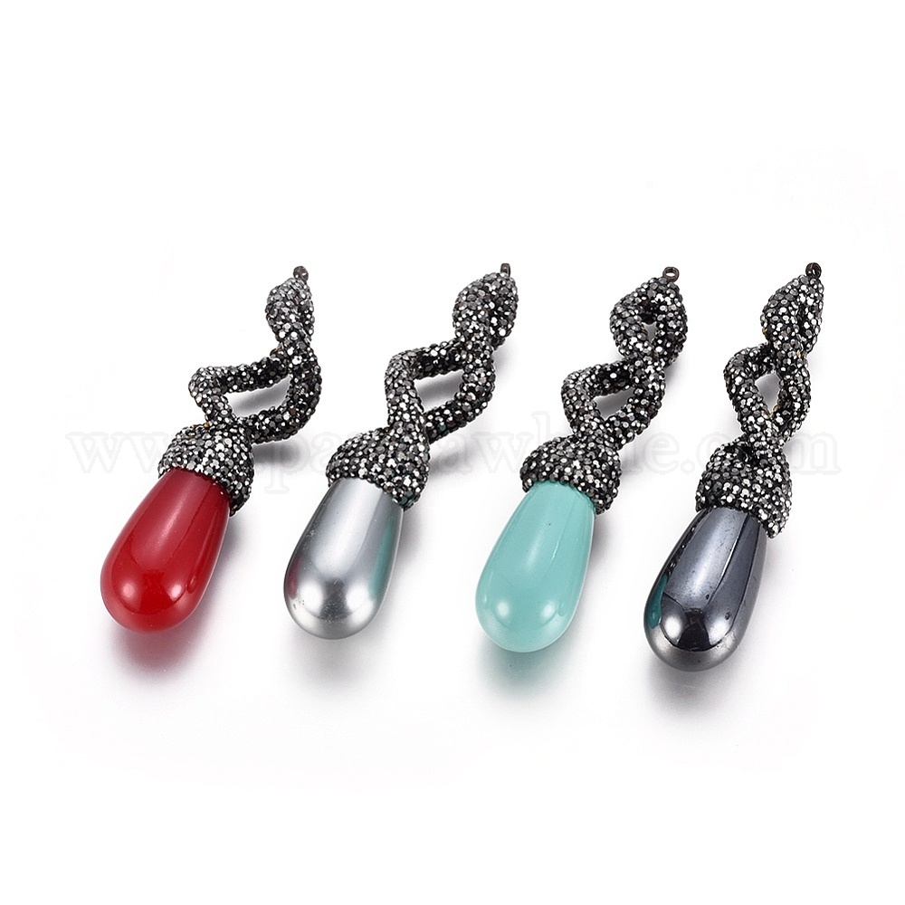 Полимерная глина хрусталь большие кулоны, с латунными выводами и акрилом, слеза, металлический черный , гематит