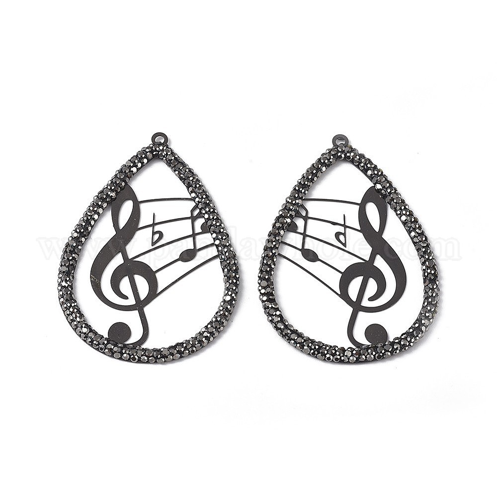 Полимерная глина хрусталь большие кулоны, с латунной фурнитурой , слезинка с музыкальной нотой