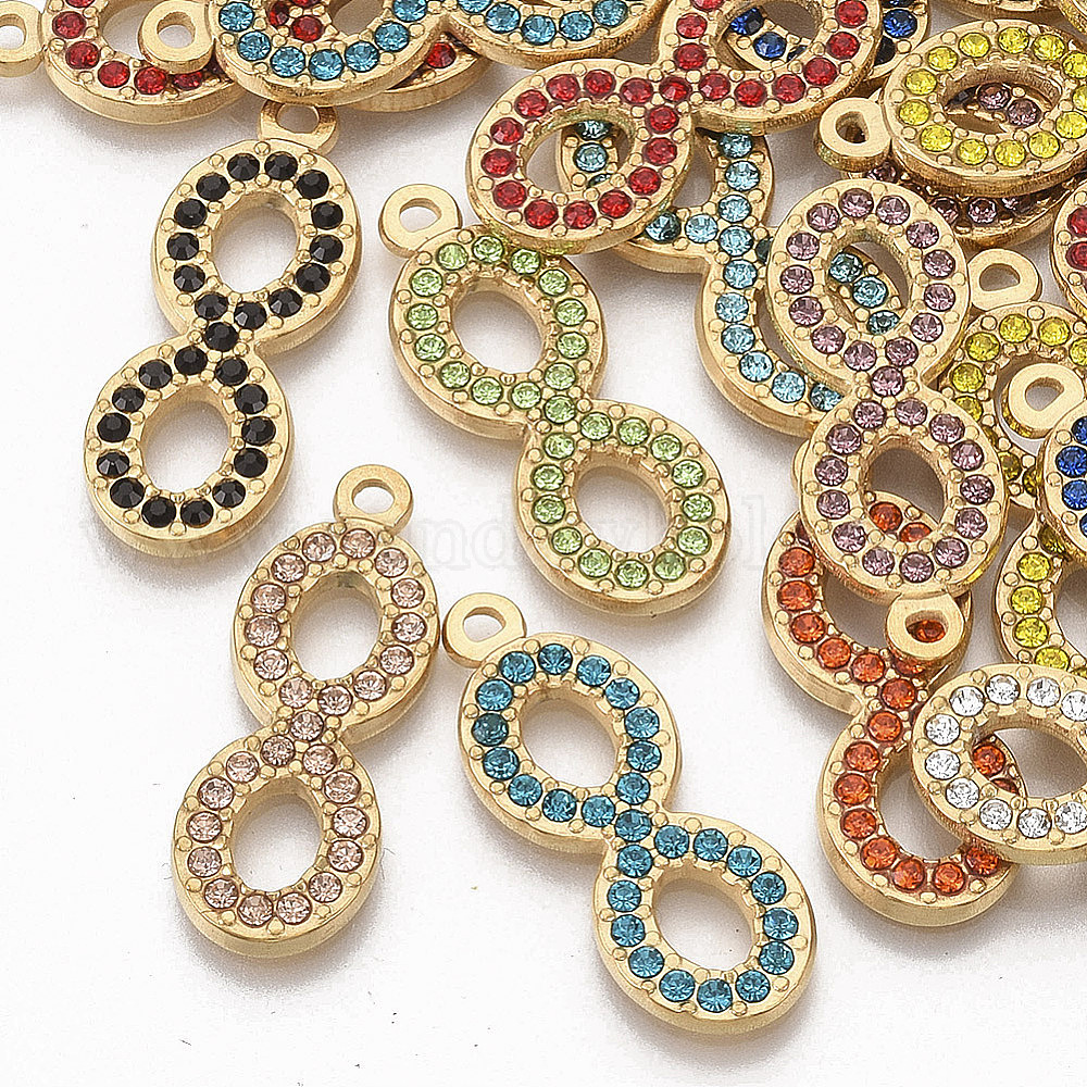 Золотой тон 304 подвески из нержавеющей стали, со стразами, бесконечность