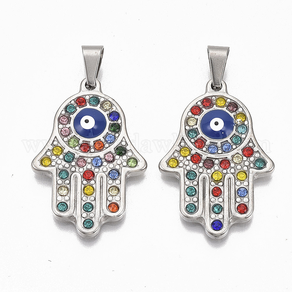 304 подвески из нержавеющей стали, с красочными горный хрусталь, железная оснастка под залог и эмаль, hamsa рука / рука fatima / рука miriam со сглазом