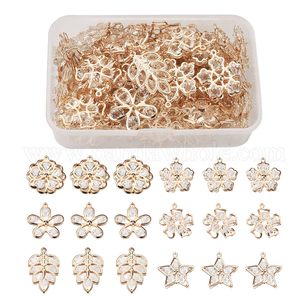 Подвески из сплава и страза, звезда, цветок и лист