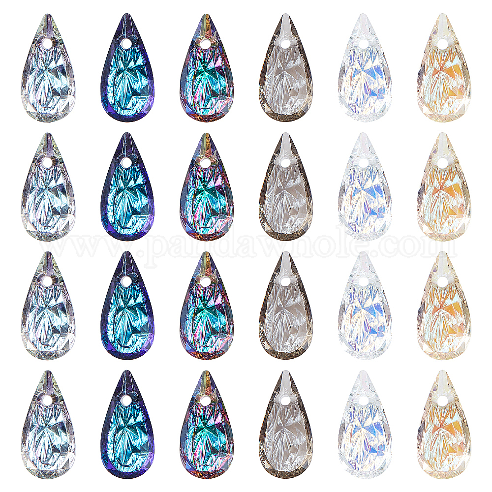 24шт 6цвета тисненые стеклянные стразы подвески, слеза, граненые (028B6X)