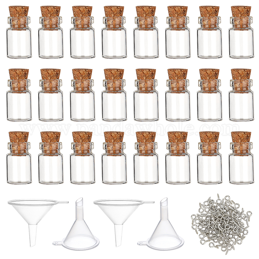 100 шт. маленькие стеклянные мини-бутылки, банки с пробками, бутылка желаний, 100 шт. Винты с проушиной и 4 шт. Маленькие воронки
