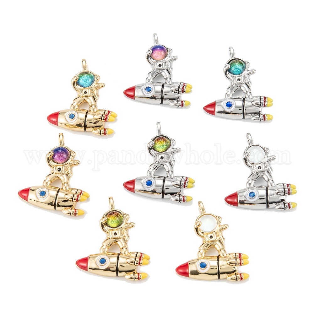 Латунь стекло кулоны, долговечный, без свинца, без никеля и без кадмия, космонавт с ракетой