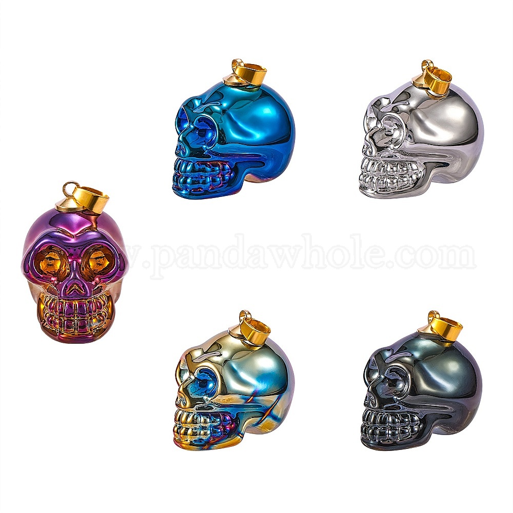 5шт 5 цветная гальваника k9 стеклянные подвески, с позолоченными латунными дужками, череп прелести, Хэллоуин